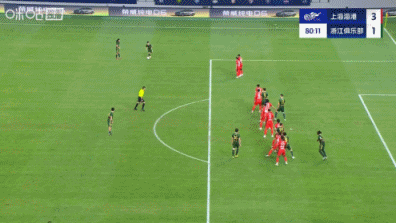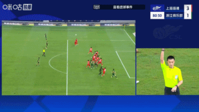 比赛第81分钟,李提香开出任意球,卢卡斯头球破门扳回一球,但越位在先进球无效。场上比分海港3-0浙江。