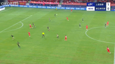 比赛第50分钟,李帅传中落到浙江队禁区右侧,王燊超跟进迎球一脚凌空爆射破门,场上比分海港2-0领先浙江。